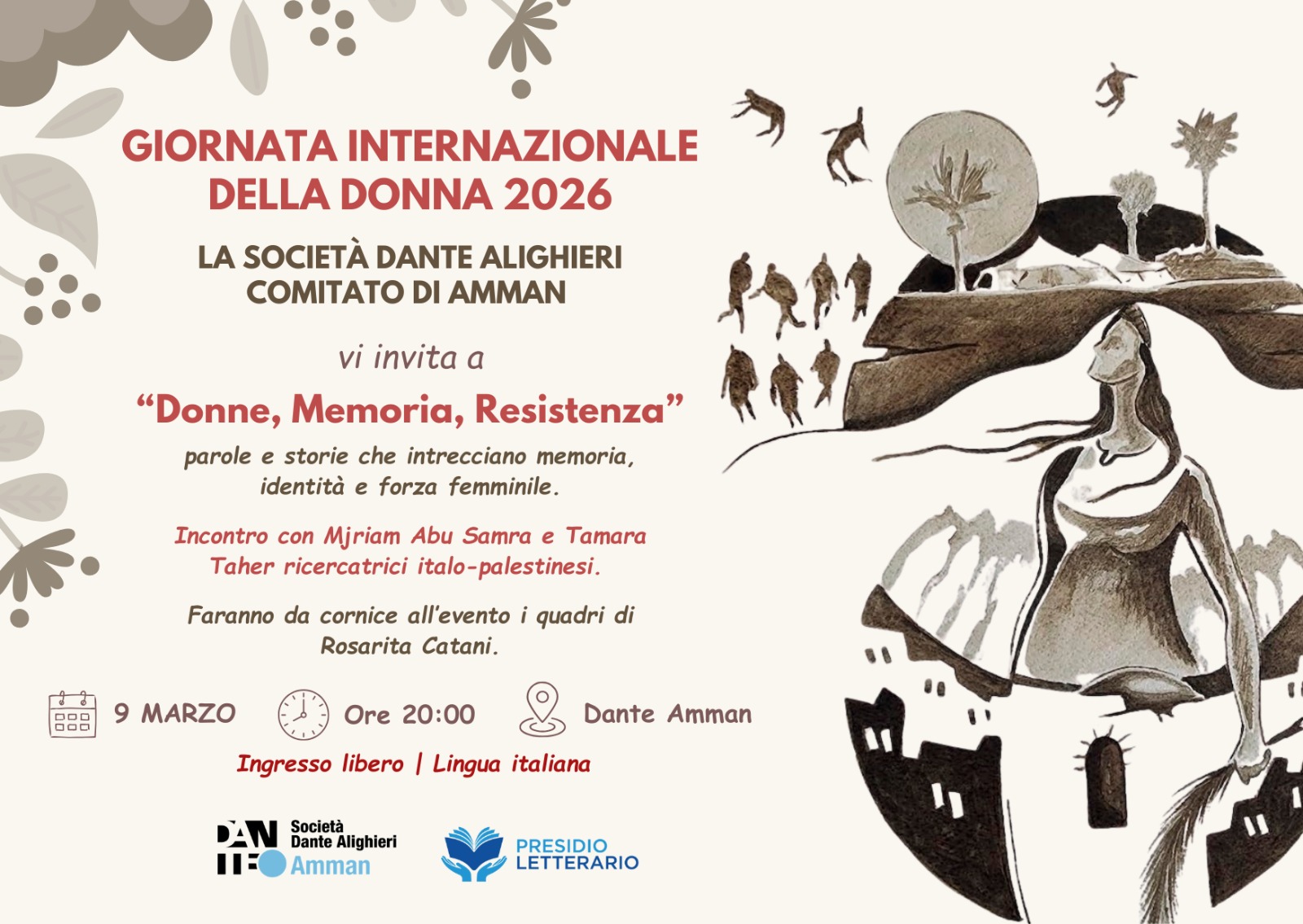 UPCOMING EVENTS Women, Memory, Resistance March 8th, 2026 | 0 Comments Words and stories that intertwine memory, identity, and female strength.